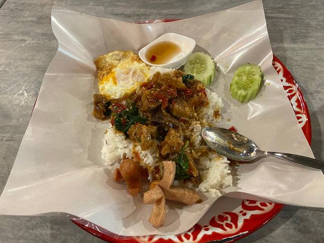 这是我来泰国后吃过的最好吃的饭,没有之一,应该是茶油或者植物油炒出来的,特别特别香