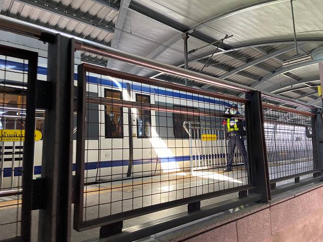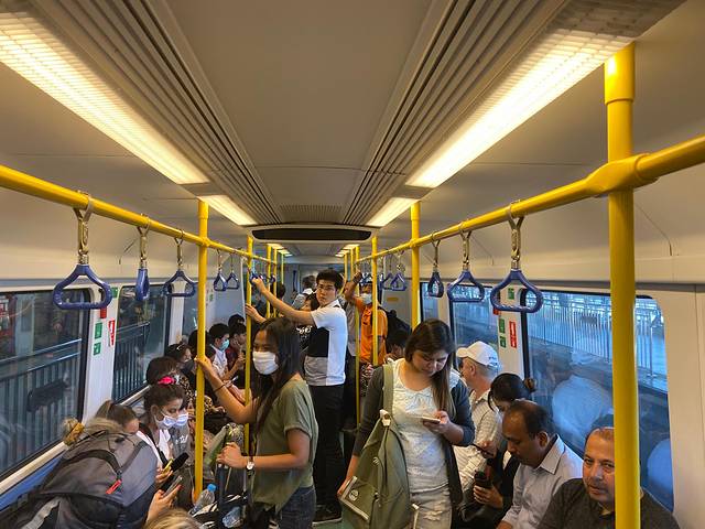 坐轻轨的大部分人都带着口罩