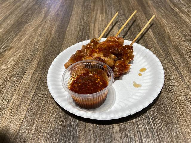 零食券只有220泰铢的价格,大概吃了猪脚饭以后来点肉串就没了,这个肉串不好吃,没有街边小摊贩卖的好吃