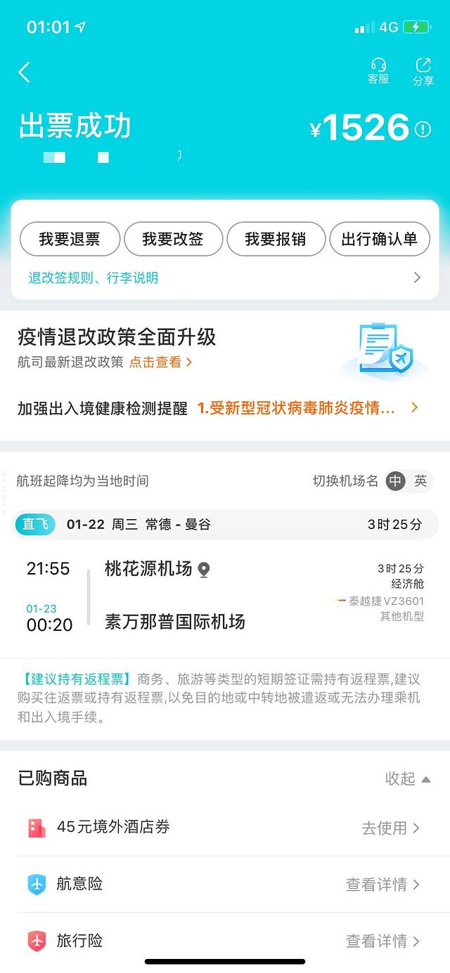 这里还有个小插曲,我们飞机停机后足足半小时都不能下飞机,还上来几个穿防护服的,我都很好奇就问空姐,结果空姐说我们飞机上有“湖北人”。。。。吓得我不轻,后来一问才知道原来是疫情之前就去了泰国,而且也不是武汉人,不过宝宝还是很怕呀