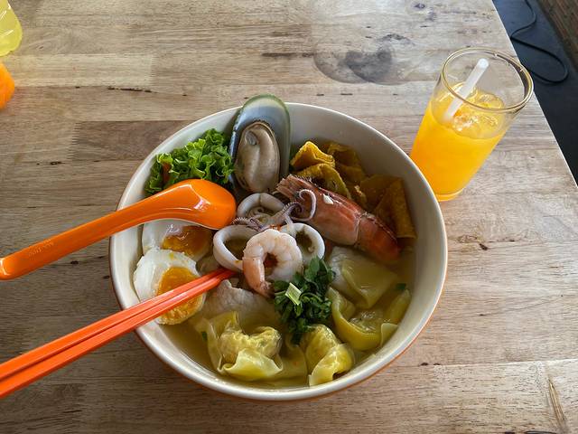 橘子汽水加一大碗海鲜面,说实话面味道一般,就那么好吃,但我认为这家店有潜力可挖,碍于我懒得探索
