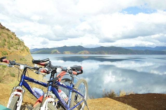 到达泸沽湖后在住宿小憩一下后搞了两辆自行车开始环岛旅行。
