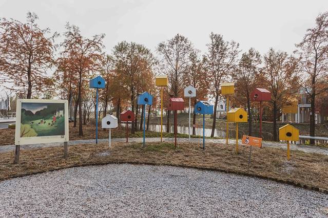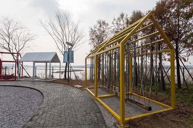 在 周庄 ,就有这么一个地方,让小朋友可以在自然棕玩啥,让小朋友可以在野趣中撒野。翻花绳蹦床、犀牛爬架、水果跷跷板等无动力设施即使是我,也有一种在野趣中回到童年的感觉,非常有趣。