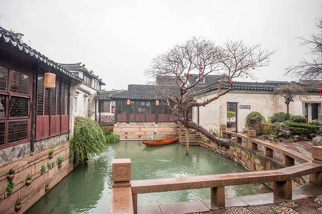 在冬日里来到 周庄 ,没有 春日 的绿意盎然,却也有一种别样的清冷与美好。关于 周庄 的回忆有很多,有摇橹船,有 江南 密布的水道,也有帮助明朝无数的巨贾沈万三。