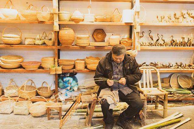 时至今日,走进 周庄 古镇,依然可以看到这些展示浓郁当地特色的手工作坊,从土布到竹编,再到酿酒,这些传统的技艺经过了时光的洗涮,更受到游客的青睐与喜爱。
