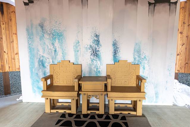甚至这里的桌椅,这里的香炉等等,全部都用纸制成,别具匠心与风韵。体重大的人也不用担心,虽说桌椅用纸制成,但纸箱承重量超过300斤,不用担心不能承载体重哦。