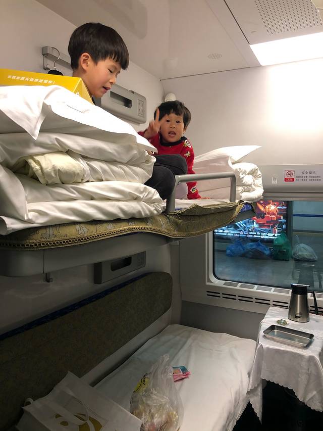 最后一天返程的卧铺,我和孩子都没坐过,无比新鲜,还送了一盒高铁的餐饮