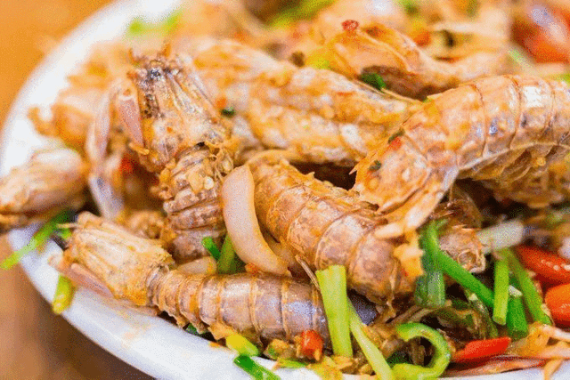 椒盐皮皮虾,从色泽上看已经欲罢不能了,真的是太好吃了,超级入味,吮指皮皮虾,我的最爱之一。