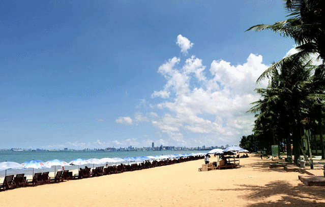 假日海滩位于海口市西北部,东起西秀海滩,西止五源河口,北临琼州海峡,南至滨海大道,全长7公里。阳光、海水、沙滩、椰树相映成趣,构成一幅美丽动人的自然画面,是海口市最具代表性的海滨旅游休闲胜地。