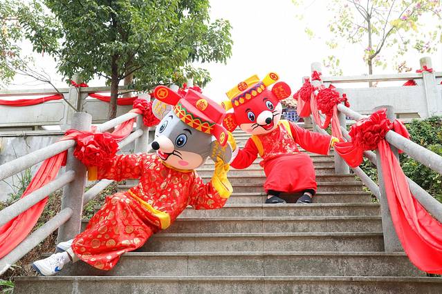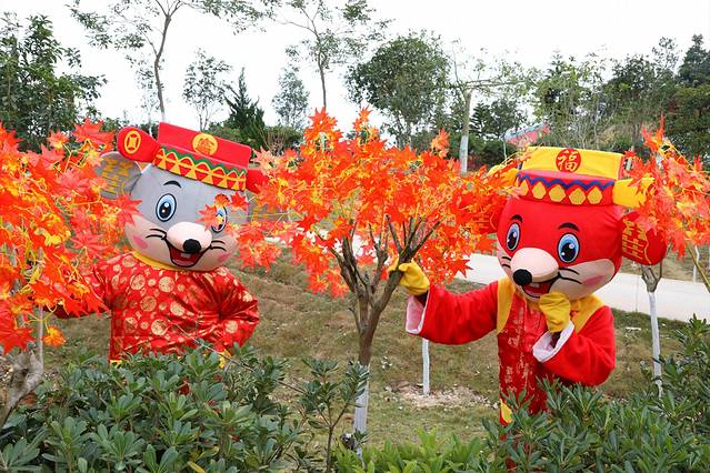 福山福地福传万家。福鼠,宫灯,枫树,发财树,许愿墙,丰富多彩的春节主题元素,尽显中国风的古朴与厚重,突显传统节日的浓浓氛围。