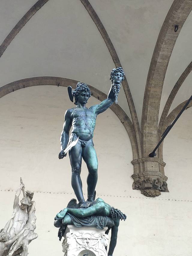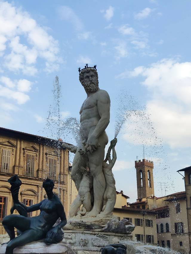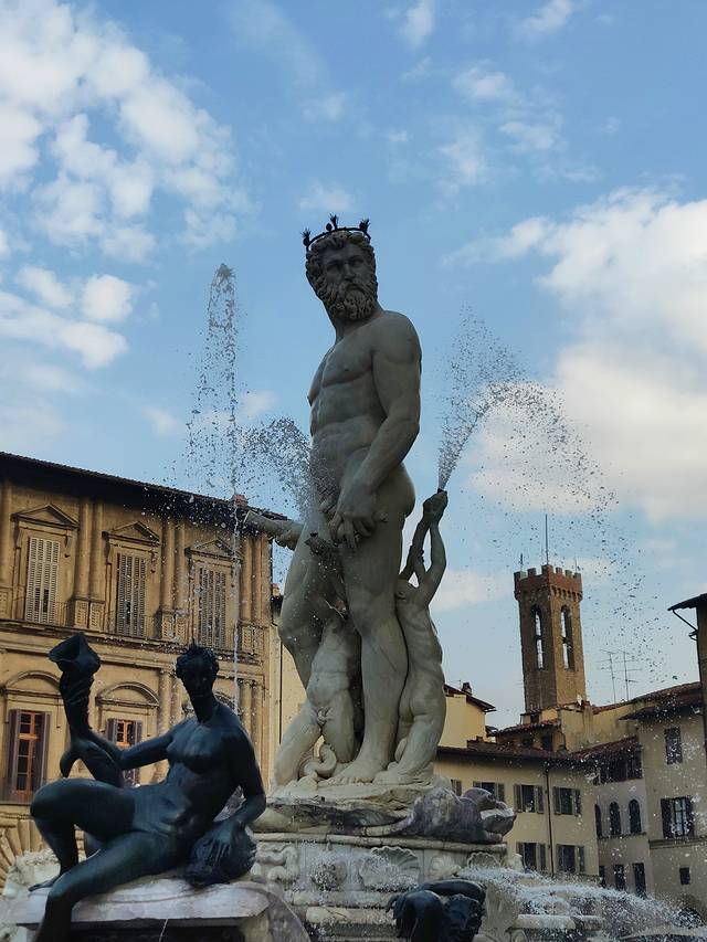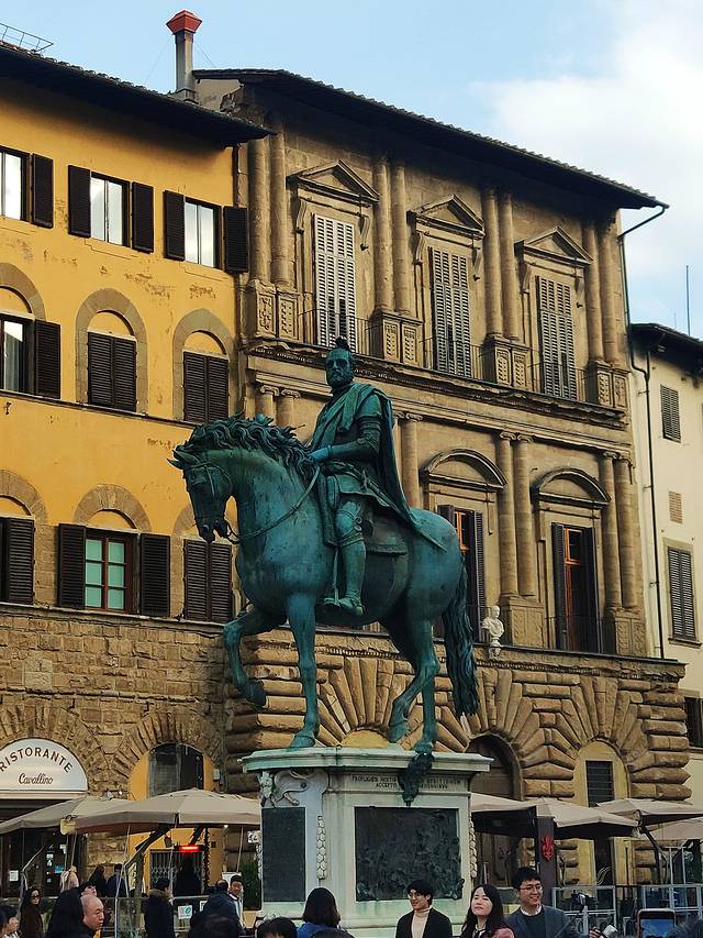 这是被称为“祖国之父”的科西摩·梅迪奇的雕像,他英姿焕发骑着马傲视着世间的一切,这座雕像是由詹波隆那于1594年创作的