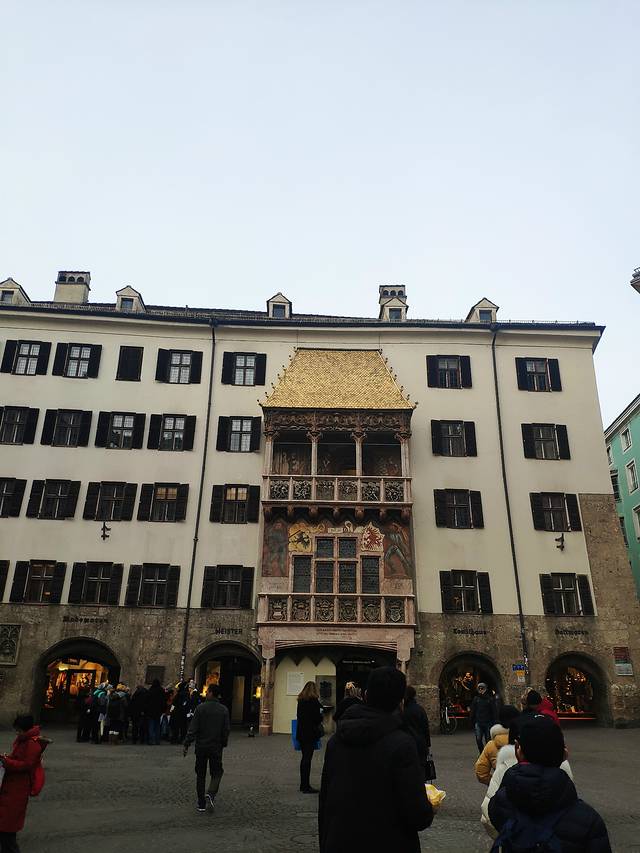 黄金屋顶建于1500年,属晚期哥特式风格的建筑,是为了纪念马克西米连一世订婚而建造的。马克西米利安一世委任尼克拉斯在1494年至1496年间将从前破旧的挑楼改建成为有哥特式穹隆的宫廷包厢,以便在这里就能观赏到广场上的比赛和戏剧表演。