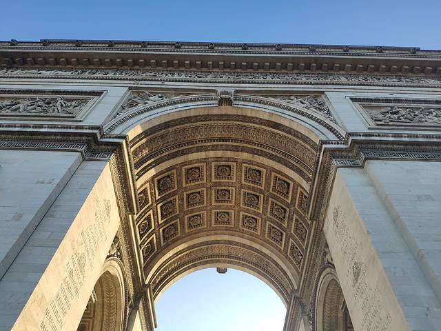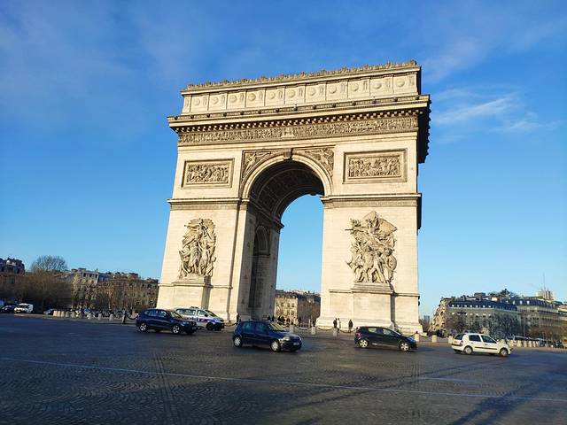 巴黎凯旋门,即雄狮凯旋门(法语:l'Arc de triomphe de l'Étoile),位于法国巴黎的戴高乐广场中央,香榭丽舍大街的西端。凯旋门正如其名,是一座迎接外出征战的军队凯旋的大门。它是现今世界上最大的一座圆拱门,位于巴黎市中心戴高乐广场中央的环岛上面。这座广场也是配合雄狮凯旋门而修建的,因为凯旋门建成后,给交通带来了不便,于是就在19世纪中叶,环绕凯旋门一周修建了一个圆形广场及12条道路,每条道路都有40~80米宽,呈放射状,就像明星发出的灿烂光芒,因此这个广场又叫明星广场。凯旋门的设计人原来是夏格朗与赖蒙,因意见不合,两年后赖蒙辞去,于是凯旋门最后按照夏格朗的设计完成。