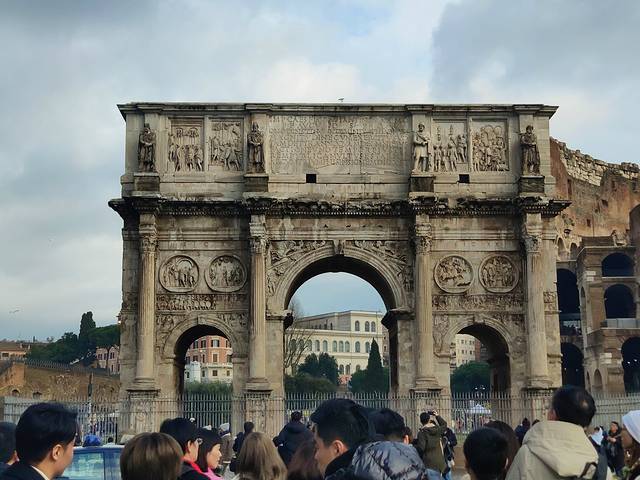 君士坦丁凯旋门,建于公元315年,是罗马城现存的三座凯旋门中年代最晚的一座。它是为庆祝君士坦丁大帝于公元312年彻底战胜他的强敌马克森提,并统一帝国而建的。