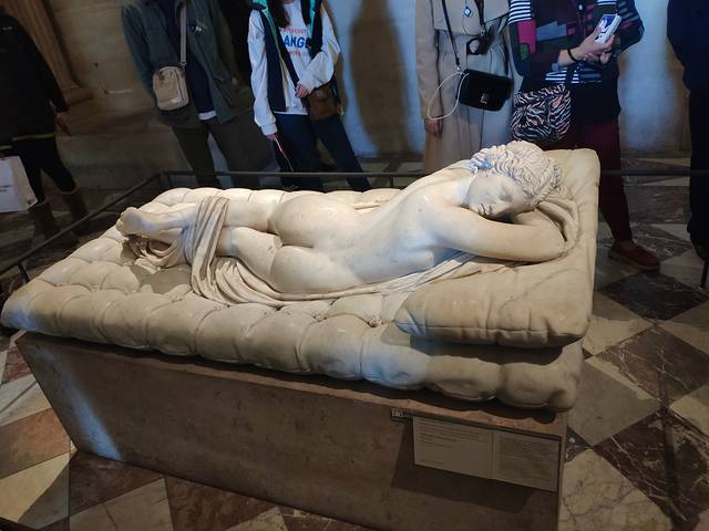 最早只是碎块,后经多年修复才得以重新站立起来,但仍然缺头少臂(1950年仅有一只手臂被找到)。雕像的作者难以考证,创作年代至今也没有最后定论,但大多数意见认为是创作于公元前200年左右,
