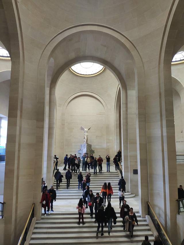 远眺胜利女神,这是希腊化时期(Hellenistic)留存下来的著名杰作的原作,被奉为稀世珍宝。作者已无从考证。又名为《萨莫色雷斯奈姬像》。这尊雕像于1863年发现于爱琴海北部的萨莫色雷斯岛,又名为《萨莫色雷斯奈姬像》。