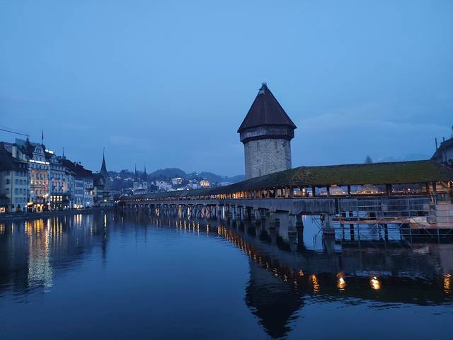 卡佩尔廊桥和八角型水塔是卢塞恩,乃至瑞士的标志性建筑。白天,桥栏上有娇艳烂漫的鲜花;晚上,廊桥和水塔在彩灯的映照下非常浪漫。