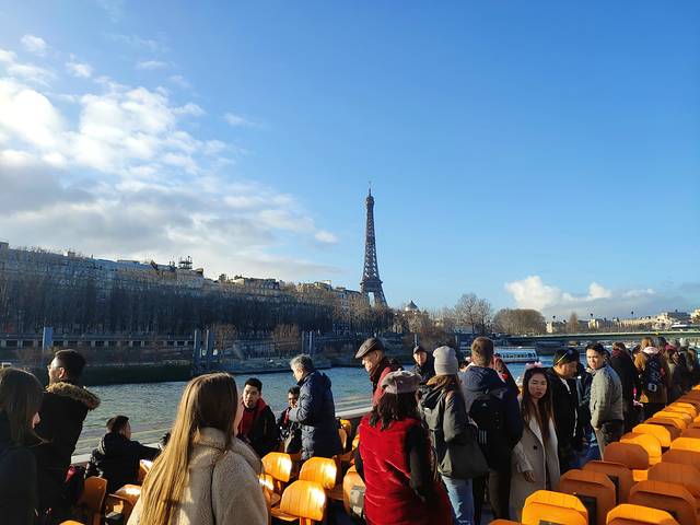 塞纳河游船一路经过,大皇宫,小皇宫,协和广场,奥赛博物馆,杜乐丽花园,卢浮宫,巴黎圣母院。可以说是连接了巴黎主要大小景点。一个小时的游船,时不时还有岸上的人在挥手致意。晒着太阳,吹着风,感受着美景,真的可以再来二十次。不过这个季节做游船真的有点冷。