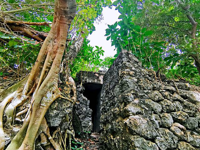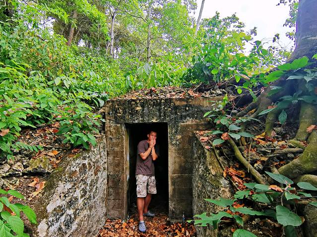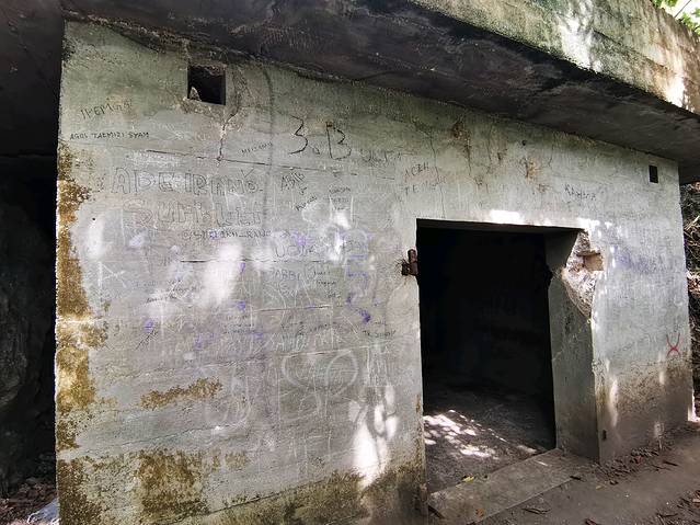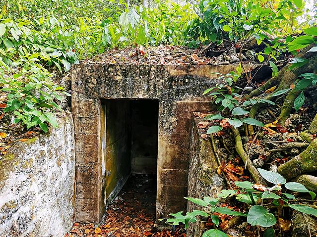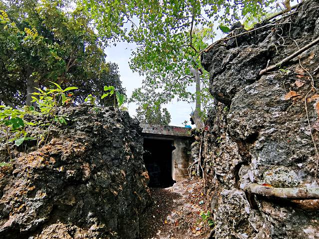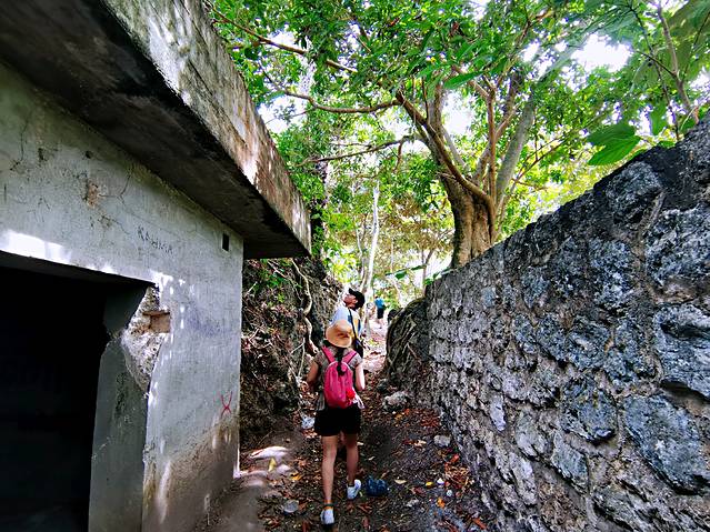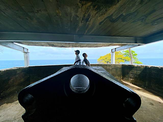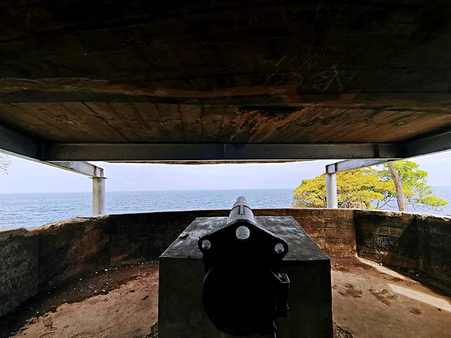 在黑沙滩的上方不远处就是二战炮台,可以直接在沙滩上眺望炮台。这个是二战的时候,用来打日本鬼子的一个炮台,不能说是炮台,可以说是一个军事基地了。当年二战的时候,日本人打的是真的远,整个东南亚和中国都是战场,几乎东南亚所有的国家都是受害国。
