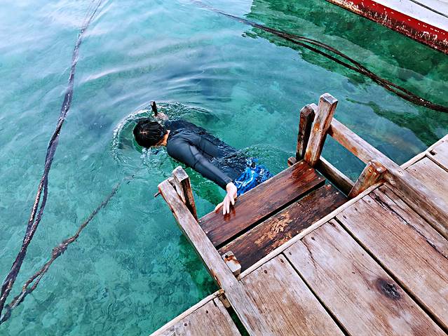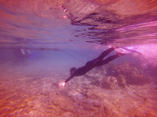 韦岛的水下世界色彩缤纷,水下有二战沉船,有秋千,游乐园。而我们就只看见了一个废旧摩托,所以还是比较遗憾的,如果能在深点会更好。
