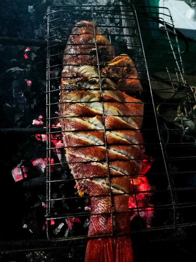 我们刚来韦岛的时候,就看见这有一家烤鱼店,我还没吃过那么大的鱼,当时就决定来吃一下,于是在第二天要离开的时候就体验了一下。味道一级棒,太好吃了,就是有一点点贵哈哈。那一条鱼就300多元人名币,算下来一个人吃了90块钱,其实也还好,国内就一个吉布鲁的价格而已,但是相对韦岛的消费来说,已经算比较贵了。