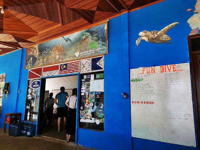 韦岛是潜水的天堂,所以当地潜店很多,马路上到处都是。我们随便找了一家,看着价格在300元人名币左右,就去试了试。