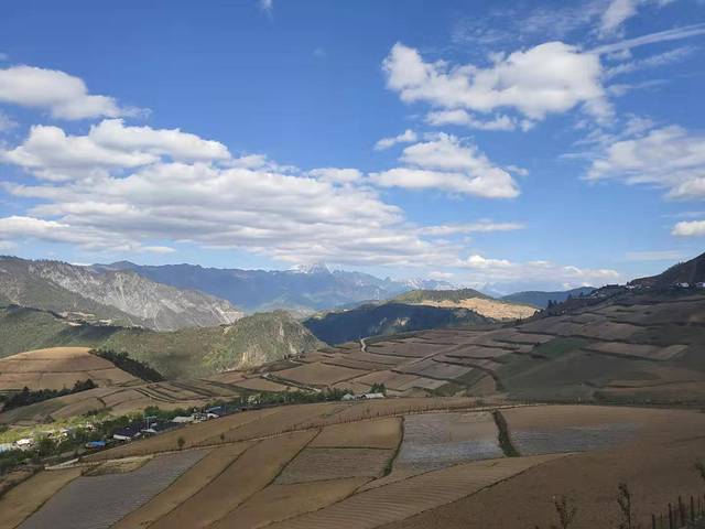 虎跳峡分两段,一段在丽江,一段在香格里拉,当时到达的地方再坐三四个小时就到了香格里拉(迪庆藏族自治州)独克宗古镇。游完虎跳峡后下午两点多坐上了去香格里拉的大巴车,到达的时候傍晚了,路上也有很多美景,看到了雪山、田园、梯田。让我吃惊的是一辆大巴车上,几乎全是外国人,我跟一家韩国四口坐在最后排,两个大孩子(已经工作)中文很好,交流很顺畅,他们一家只有三天的假期,但是还是专门从韩国飞过来到香格里拉来看看。这一家都信奉基督教,跟我宣扬了一下《圣经》里面的一些内容,让我下载一个学习的网站,里面主要讲解《圣经》的。真是很有趣很疯狂的一家人了,热爱旅行,热衷信仰。下车后,互加了微信,不过之后没有联系过了。