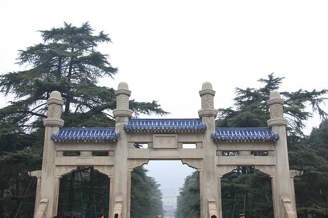 我们先是去了中山陵,这个景区需要提前预约,因为不是节假日,所以我到了门口现场预约,也很顺利的进去了,景区特别庄重,整体是灰白和琉璃蓝色调,稳重但是又不沉闷,景区门口有讲解仪,我们每个人各自租了一台,一边走一边听(租讲解仪是我现在出门的必备,觉得又方便,又不被打扰,自己一个人静静的欣赏,很喜欢),初冬的季节,阴阴的天气,再配上讲解员浑厚的嗓音,在中山陵园区内心情都是很黯然和怀有一份敬意的,那种天气我觉得也适合缅怀伟人。