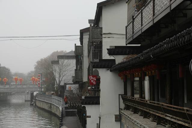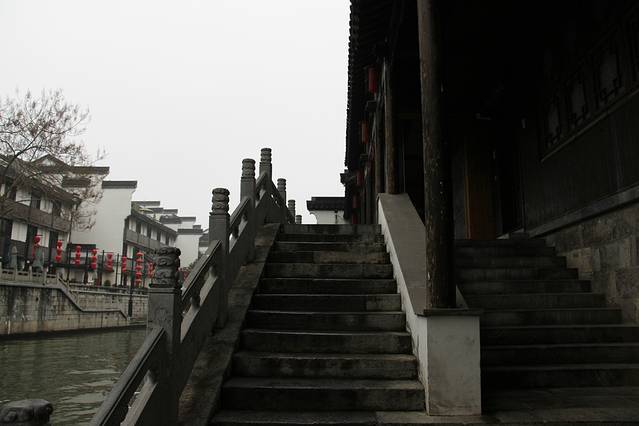 到达秦淮河,雨已经停了,但是水汽依然很足,湿漉漉的道路,阴霾的天空,眼前就是一幅黑白画面,偶有的艳丽就是灯笼,城市像是静止一般,轻松自在。其实没有什么目的地,就是随意的散步,也能走着走着就看到风景。