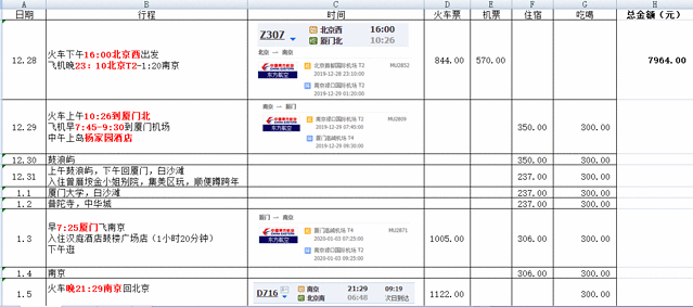第二次在厦门跨年,缘分吧,正巧自己喜欢的人在厦门跨年演出,正巧家人也一直希望去一次厦门,所有的机缘都赶在一起的时候,就是缘分到了吧。因为假期比较长,加上机票的费用问题,追加了南京这站,向往很久的一个城市,最初喜欢她的烟花柳巷,后来喜欢她的文艺清新,无数次路过却不曾停下,这一次,不想再错过...(PS:本意想拍Vlog记录,奈何带着家人,太多局限,只好放弃了。至于攻略,出发时仅带了这张表,年纪大了,喜欢随遇而安)
