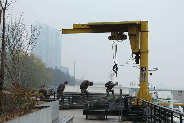 中山码头东边有一个废弃工厂改建的公园,曾经的机械还在原地望江兴叹,难掩曾经工业时代这里的辉煌,看着这些机械会有些许悲凉在心里。
