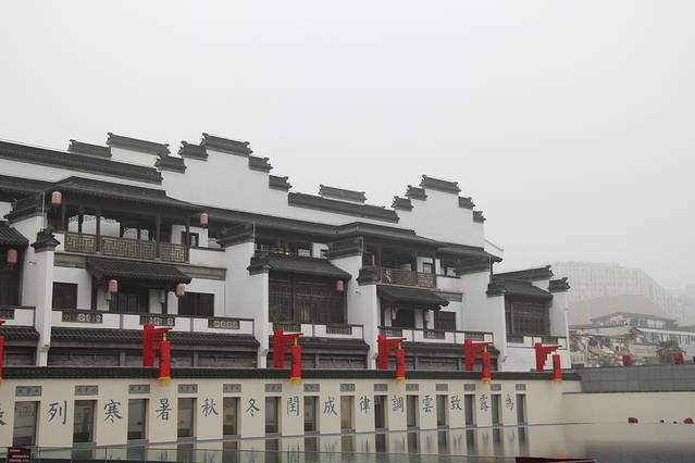 忘了是如何走到景区了,甚至我不太有意识哪里是起点,因为天气的缘故,行人并不是很多,又因为时间缘故,我们只是在门口逗留了一下,并没有进夫子庙之类的景点,而是选了一家老店(奇芳阁)歇脚顺便品尝美食,点了一些想吃的小食,最惊艳的要数赤豆元宵,小小一碗太香甜了,混合着桂花和冰糖的甜唇齿留香,元宵如糖豆一般大小,软软糯糯,红豆早已糜烂在碗里像是豆沙,一勺下去就是幸福的味道。其余还点了鸡汁回卤干和鸭油烧饼,特别提示鸡汁回卤干好咸好咸,鸭油烧饼我倒是没有吃出来鸭油的味道,但是很烧饼很酥,基本上能入口即化的。