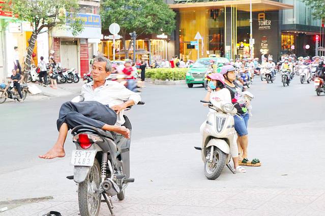 拖着行李箱走在大街上,据说这是胡志明市最热闹的地方