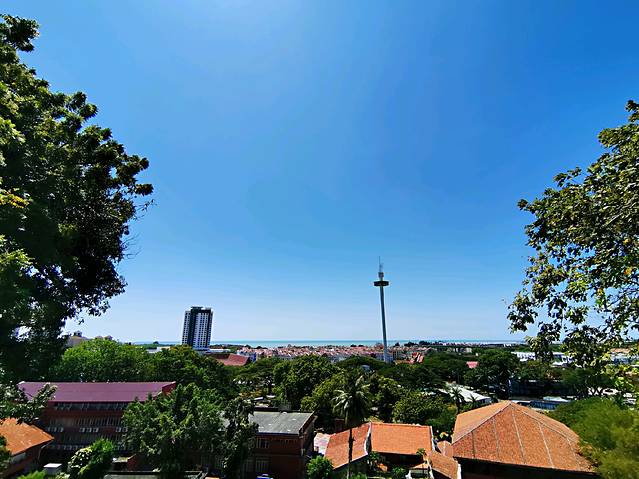 圣地亚哥城堡也在荷兰红屋旁边,旁边有一个楼梯,网上一直走,就是圣地亚哥城堡了。上面那景是非常好看的,而且还有一个网红的拍照地,照起来特别美,在上面还可以俯瞰马六甲全景。
