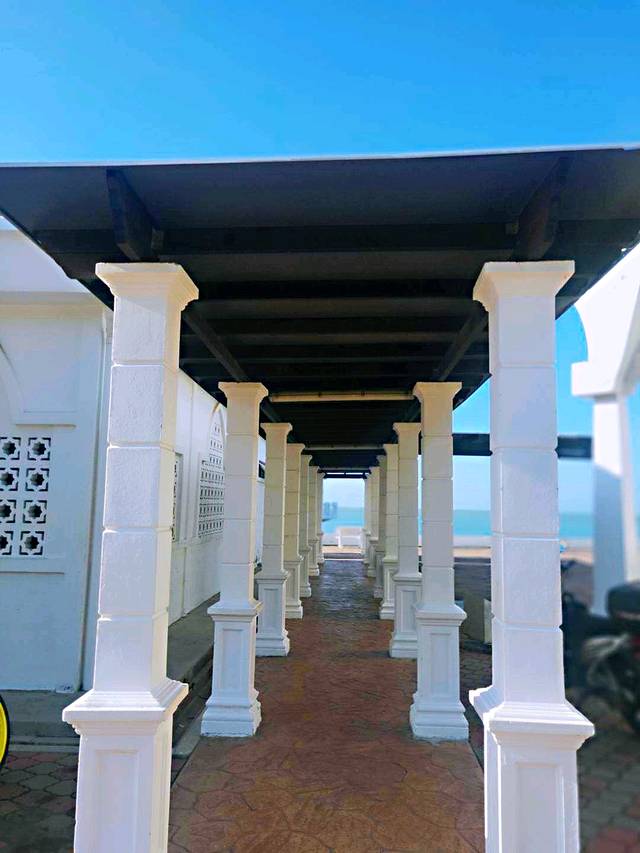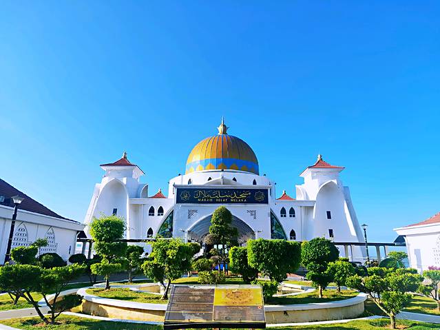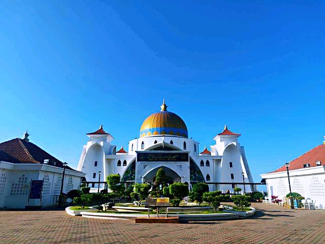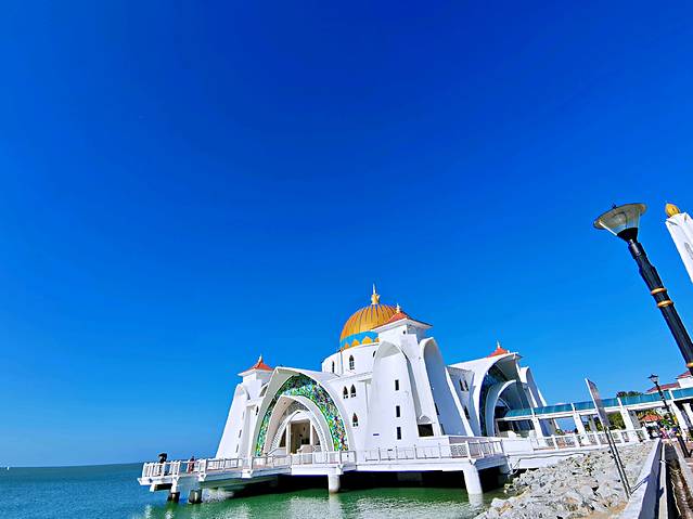早上六点我们就踏上了去马六甲的征程,从吉隆坡到马六甲,大概行驶两个小时左右。我们的第一站就是马六甲海峡清真寺。其实我一直都想来马六甲,可能是读书的时候马六甲海峡看多了,现在也算是梦想成真。马六甲海峡清真寺旁边的一片汪洋大海,就是马六甲海峡。