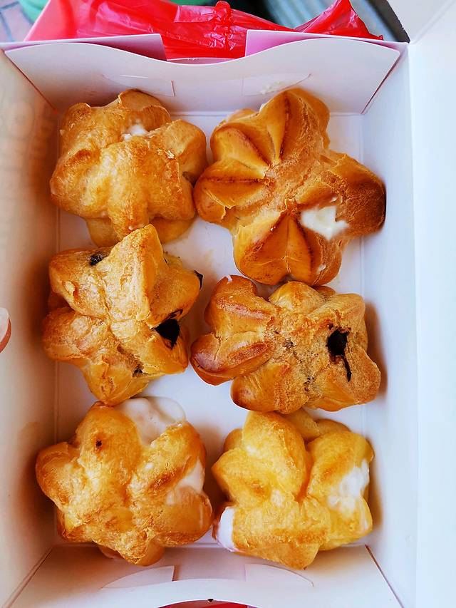 这个是我在鸡场街买的泡芙,三个味道,榴莲,奶油,冰淇淋。味道超级好吃,就是很贵,这6个就是30多元。