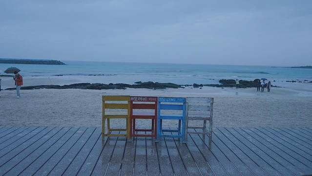 我后来又因为谷歌地图导错路,提早三个公交站下车,导致大家在下雨的情况下,撑着伞走在乡间无人的路上,走了快一公里的路,看到一个沙滩,谷歌地图把一个海水浴场标成了月汀里。