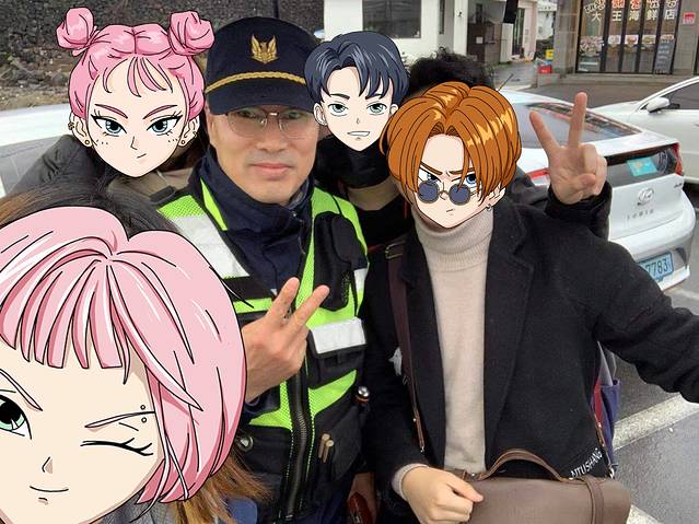 幸亏那里停着一辆警车,车里有两位警员。我因为自责就上去social,想着警察叔叔能不能带我们去目的地。蹩脚韩文+英文+身体语言,稍微扯了一会儿就提出能不能带我们去月汀里,警察叔叔说OK! 我说我们有四个人,超载可以吗?警察叔叔说OK。天降救星,上车后我才注意到,没等我提出载我们这个请求时,坐副驾驶的警察叔叔就比着大拇指指向后面了。好感动,警察叔叔还特地绕着海岸线带我们去了目的地!在国外坐了一回警车,难忘的体验。港真,我们碰到的韩国人都挺好的,反而是在韩国的中国人有时候态度不咋地。