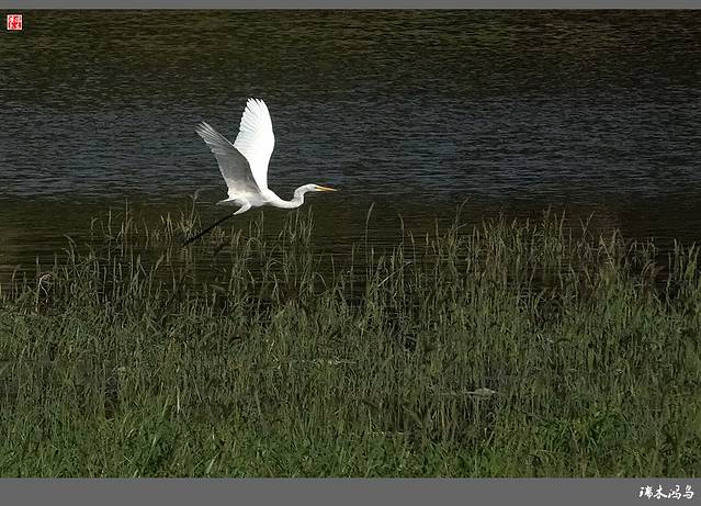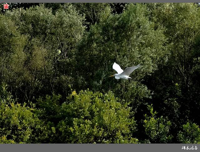 沙河,一河碧波,如闪光的缎子,在阳光下熠熠生辉。河面开阔,绿荫匝地,站在大堤上顺流东看,微风拂起层层涟漪,如一川流动的玻璃浆液。远处一桥横卧,如浮出碧波之上,白色桥体在夕阳映照下分外醒目。逆着阳光西望,满河耀金,辉光射目。细碎的光影在浪尖上跳动,营造出如梦如幻的意境,让人在意乱情迷中忘怀俗世。沙河它平静,湛蓝,温润如玉,轻泛波光,“沙河水清鹭先知” 人类逐水而居的天性,其实与白鹭步调一致,尺码相同。经过改造的沙河生态环境越来越好,即有了白鹭成群而至,这是对生态治理的认可,是对环境质量的肯定。仲夏的黄昏,在寂寥的沙河湿地,我看到了一首翩然流动的小诗,一群白鹭翻飞在暮色深沉的河面,回旋着,扇动着美丽的翅膀,一会儿又高傲的站立在浅滩水草上,用它那铁色的长喙啄食水草中的小鱼虾。偶尔,它也会仰起头,看看即将沉落的残阳,还有那潺潺东流的沙河水,那神态总是那么的优雅,时而展翅低飞、时而闲庭信步,仿佛在和自己玩着寂寞的游戏。河心岛上绿树成荫,上百只的白鹭栖息在此。白鹭是极有灵性的水禽,也是诗人最喜欢选用的意象。它那特有的长颈、那雪白的衰毛,那全身的流线型结构,那铁色的长喙,那青色的长腿,增之一分则嫌长,减之一分则嫌短,素之一分则嫌白,黛之一分则嫌黑。一身素白的白鹭,姿态优雅从容,高洁的形象尤其招人喜爱。山于水,是静美的山川;水于鸟,是水波的开花;鸟于人,是世间的和美;立在枝头的白鹭像一个个“翩翩少年”,此情此景宛如一幅优美的画卷。这些精灵欢快地飞翔着,呢喃着,啁啾着,它们飞过山水,飞过城市,飞过人群。