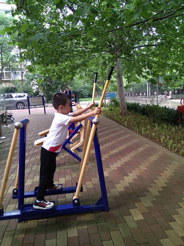 收拾妥当,出门逛逛。北戴河的街道都是很整齐干净的,路过两年前来时住的日租房,记得那时候这个健身器材小朋友自己上去都是站不稳的,而现在自己可以玩的不亦乐乎。当时到处都是出租自行车的,我骑着自行车前面可以带着小朋友,出行很是方便,但现在已全部取缔了,全部改成共享单车。感叹时间的飞逝,转眼已是两年光景!