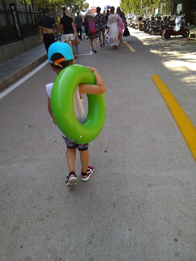 孩儿爸一直带着小朋友在水里玩,后来旁边有个水上脚踏车开始营业,我们就去骑了骑,真的很费力气,最主要的是好不容易骑进去了一段距离,我居然就有了晕船的感觉,孩儿爸只好下来给我们推了回来,因为推着会比骑着快,但最丢人的还不是我,因为跟我们一起出发的另外的一家三口居然跑出去好远回不来了,那个爸爸一个人跑回来找工作人员去帮忙,一对比我还好,哈哈哈……