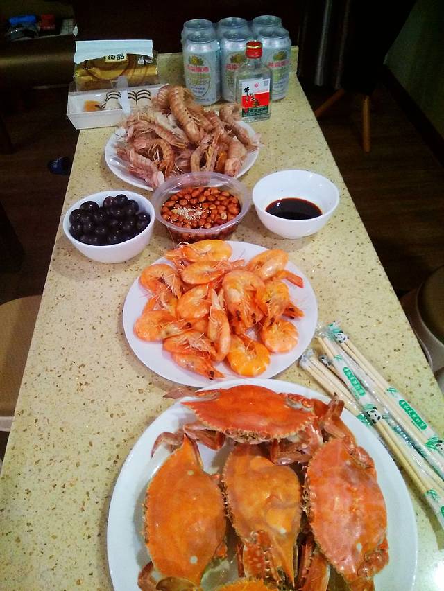 去宾馆附近的海鲜市场选了些海鲜回来自己简单加工,虽然已近晚上九点,但依然人来人往,这个季节北戴河的海鲜大多数都是外地进来的,也不肥美,但既然来了当然还是要吃的,对我们而言吃的就是感觉。记得两年前来每天都去早市采购海鲜,各种坑各种躲,白天就是玩,晚上回来我们姐妹几个就是吃,天天吃到深更半夜好不开心!