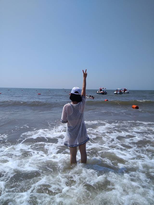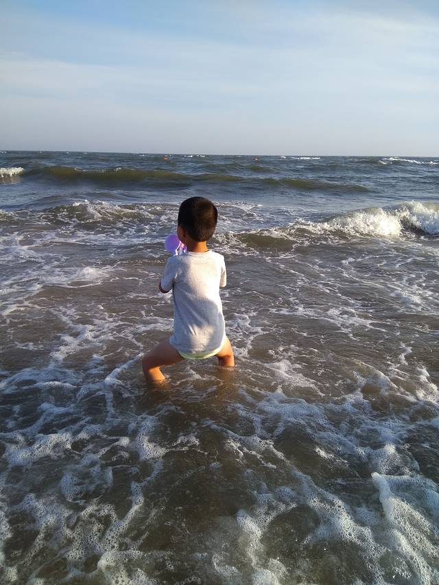 回宾馆换好泳衣,这就是离海边近的好处,顺着刘庄夜市出发中海滩!刚看到海的地方人一定很多,所以我们继续往里走,避开人群,居于中海滩和西海滩中间的位置人就少很多了!快乐的玩耍时间,玩水玩沙子好不开心!