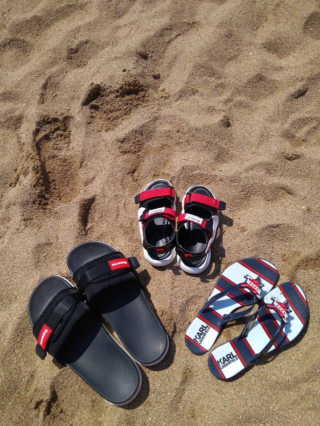 睡到自然醒,天气是真好也够热,所以一定做好防晒准备,孩儿爸不信我的话,一天下来后背就全部晒伤!在楼下简单吃了点早餐,出发去买泳衣拖鞋手机套,这些东西北戴河到处都卖,所以没必要在家准备好带过来,现买就成,当然要记得讲价!