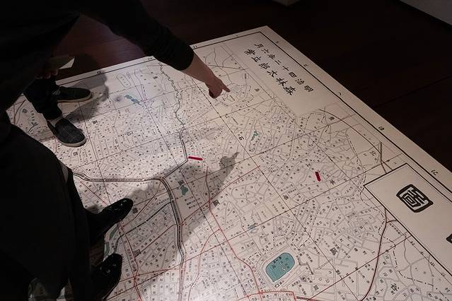 还展出了森鸥外绘制的100年前的东京都心巨幅地图