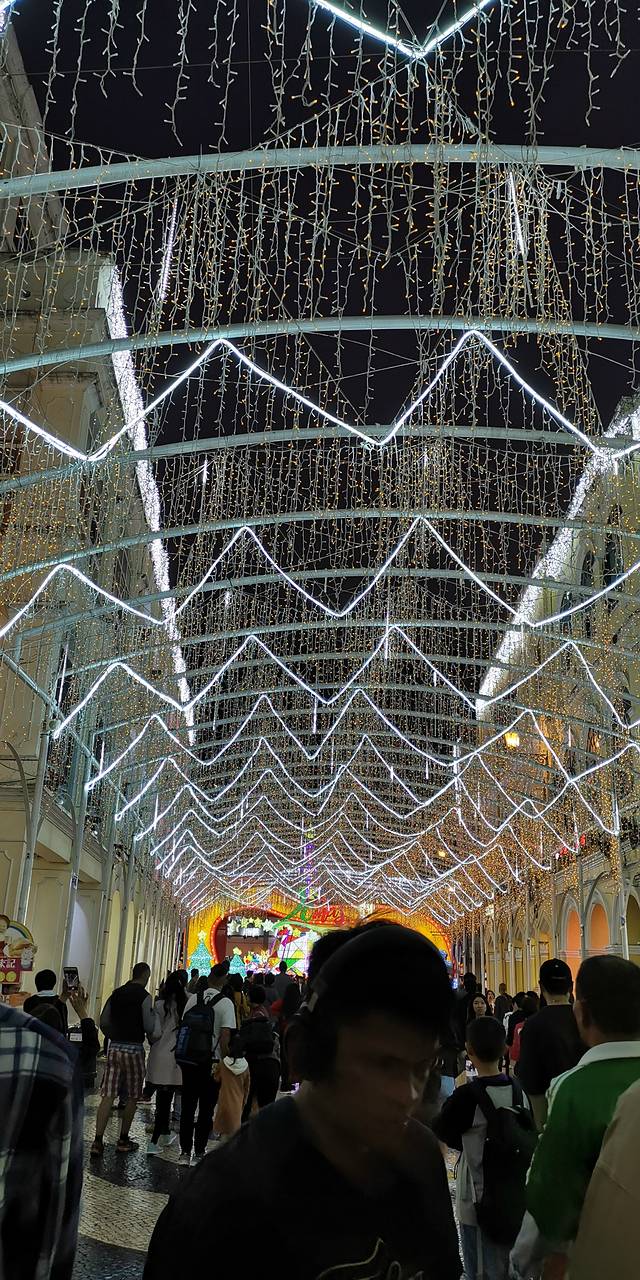 因为近,而且澳门的节日气氛肯定比国内更浓郁,我们于中午坐城轨来到珠海,过关不到20分钟就到了澳门。圣诞树,彩灯随处可见,不自觉就被感染,乐享其中。