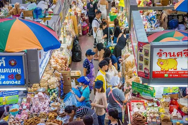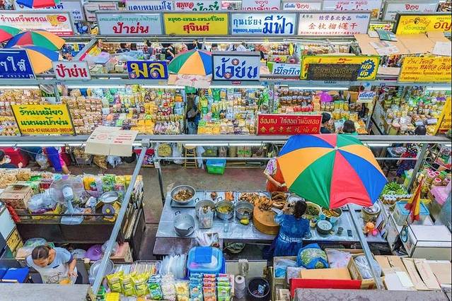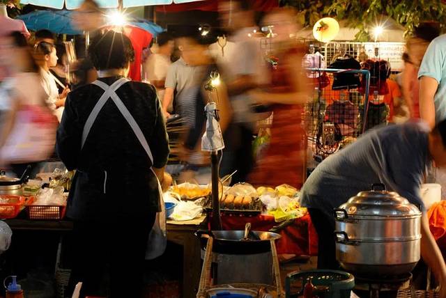 在泰国,夜市是一种不可或缺的存在。每到天色稍暗,周日夜市就会有各色各样的摊位支起来,摆着琳琅满目的商品。我们可以在热闹市集里找回丢失的烟火气。