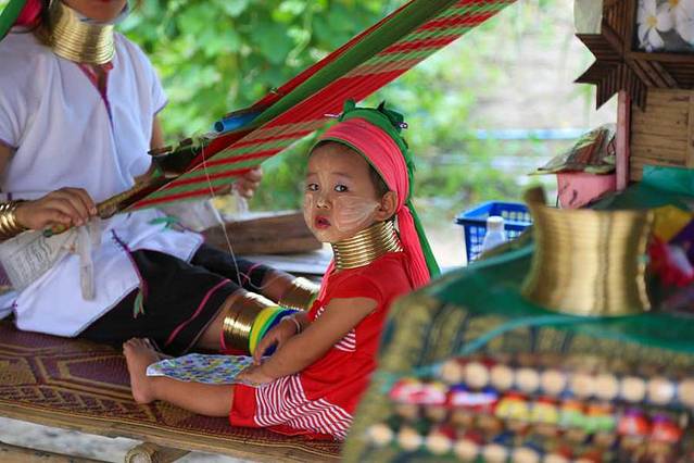 喂完后前往邦东少数民族村,这里住了来自不同地方的少数民族,在这里能够深深感受100多人胡村子。这是一条男耕女织的集体农庄生活,少数民族风情很浓郁,我去的那天,看到很多长颈族少女在编织手工,手巧心细啊。逛完这个少数民族村我们就汇酒店参加欢迎晚宴了,晚宴后休息。