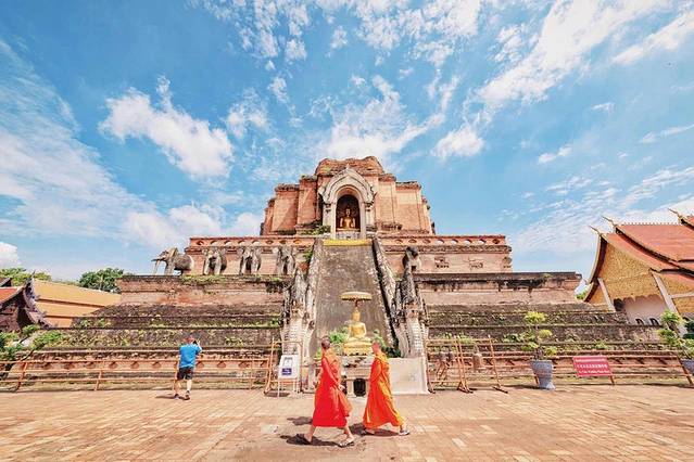我我们第三天的第一站是柴迪龙寺,柴迪龙寺中央是一座兰纳式四方形大佛塔,据说也是因为这个而得名。我们欣赏够这里的风情之后就各种拍照,拍完前往双龙寺,双龙寺是一座由白象选址、皇室建造,充满传奇色彩的庙宇。看完双龙寺之后去宁曼路。