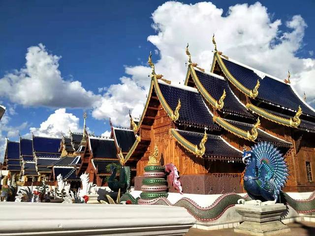 老虎园之后我们前往蓝庙,蓝庙应该是人文旅行建筑的爱好者的好去处。蓝庙的建筑融合了兰纳和缅甸两种风格,最鲜明的特点就是屋顶以一种鲜明的湛蓝色为基调。